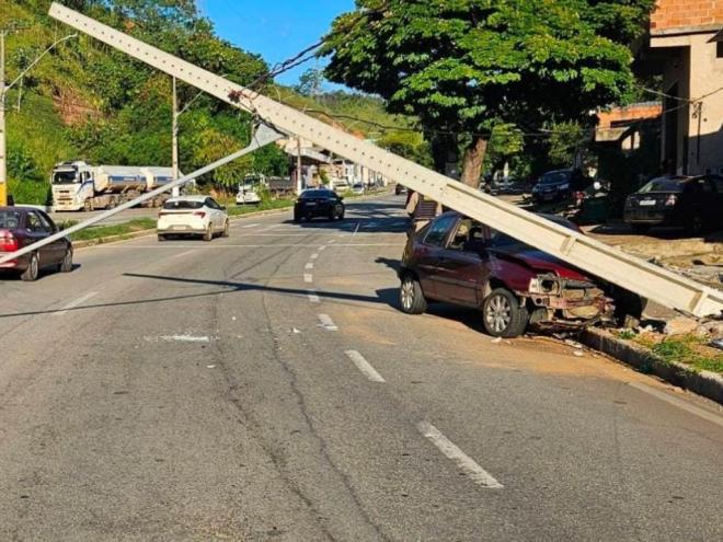 No fim da tarde deste sábado (3), um Chevrolet Kadett se chocou violentamente contra um poste à margem da avenida Presidente Tancredo Neves, no bairro Caladinho, em Coronel Fabriciano