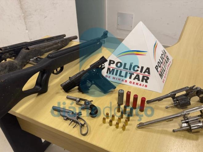 Uma operação da Polícia Militar no fim de semana resultou na apreensão de diversas armas de fogo e munições em uma residência localizada no bairro Bom Jardim, em Ipatinga