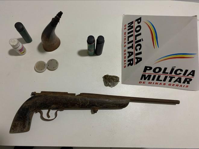 Um jovem de 26 anos foi preso por posse ilegal de arma de fogo e insumos para munição