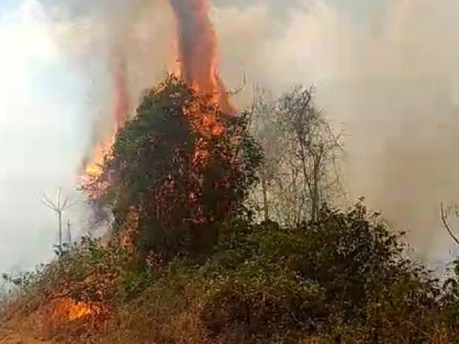Um incêndio criminoso, iniciado na manhã desta quinta-feira (26) consome a vegetação à margem de uma estrada rural no córrego do Monjolo, em Santana do Paraíso