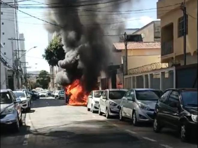 Uma van Fiat Ducato pegou fogo e foi totalmente consumida por chamas