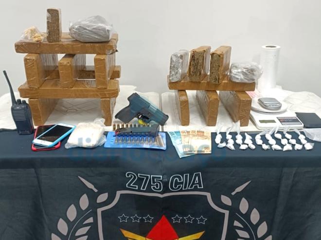Cerca de 15 quilos de maconha, além de cocaína e crack também foram apreendidos pelos policiais militares