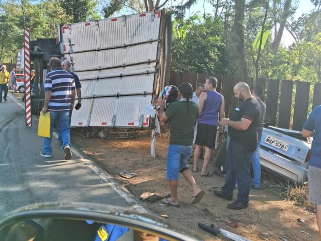 Atualizada às 9h21 de 18/7 Um grave acidente de trânsito foi registrado na avenida Kiyoshi Tsunawaki, no bairro Das Águas, em Ipatinga, com uma batida e tombamento de uma carreta contra oito automóveis estacionados na via