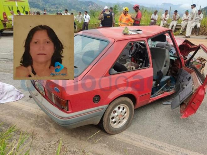 Selma Barbosa Bento Lage, de 66 anos, passageira do Ford Escort Hobby, que se envolveu em um acidente na quarta-feira (1), na MG-758, em Açucena, morreu nesta sexta-feira (3)