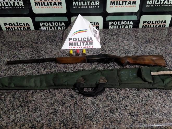 Um homem que proferiu ameaças de morte contra a esposa acabou preso e em sua residência policiais recolheram uma arma calibre 12 municiada