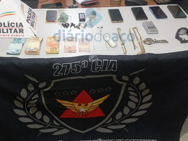 Policiais militares apreenderam porções de drogas durante abordagem a quatro suspeitos na avenida Vitória-régia, no bairro Recanto Verde, em Coronel Fabriciano
