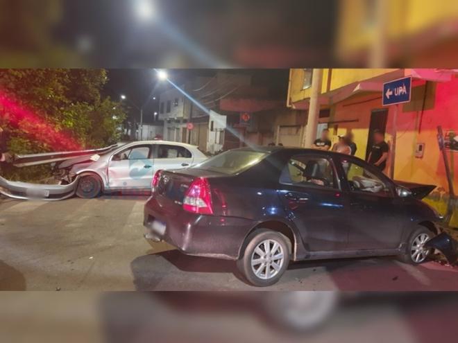 Na madrugada deste domingo (4), foi registrada uma colisão entre dois veículos, um Fiat Argo e um Mitsubishi Lancer