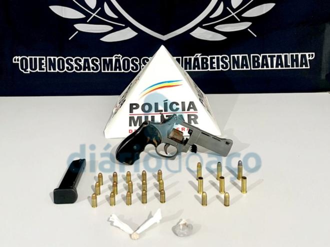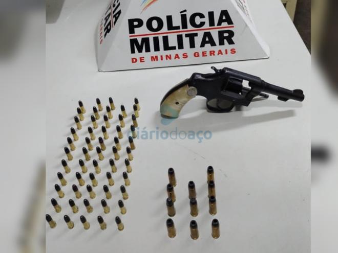 Policiais militares apreenderam um revólver e munição com um homem de 36 anos na rua Figueira, no bairro Jardim Vitória, em Santana do Paraíso