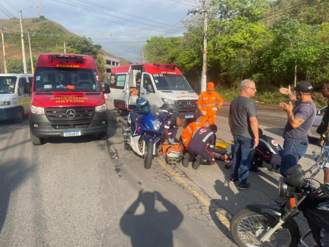 Um acidente nesta manhã, na avenida Alexandre Torquetti, no bairro Alegre, em Timóteo, deixou um motociclista ferido