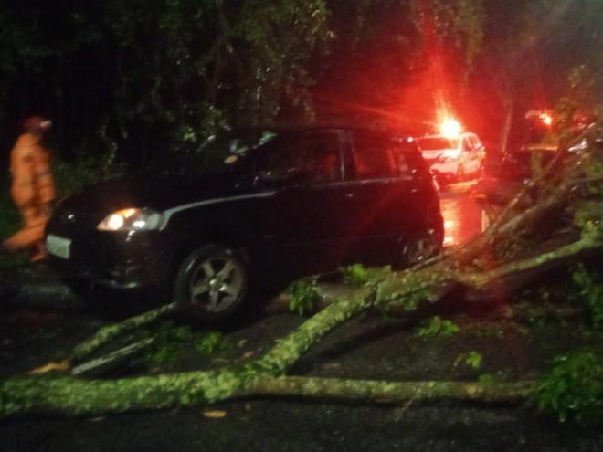 A queda de uma árvore interditou a passagem em um trecho da Avenida Engenheiro Kiyoshi Tsunawaki, no bairro Das Águas, em Ipatinga