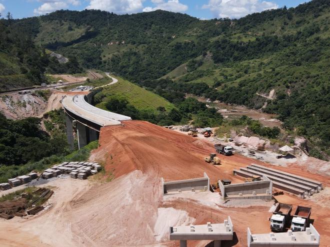 O viaduto sobre a Estrada de Ferro Vitória a Minas (EFVM) e a ponte sobre o Ribeirão Severo I estão nos estágios finais de obras, dentro do lote 3