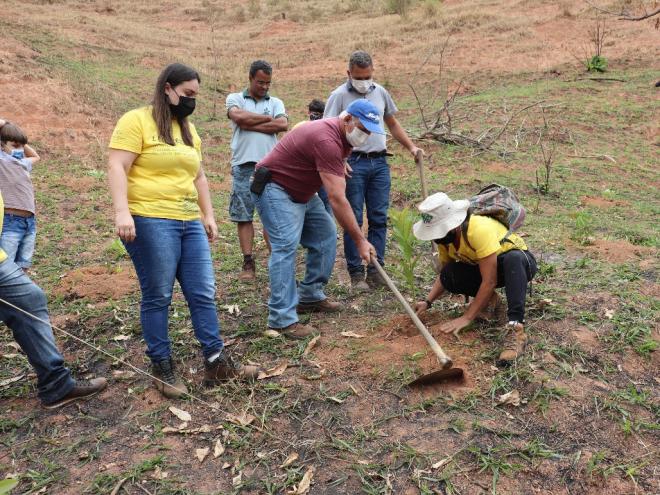 A Secretaria Municipal de Desenvolvimento Econômico, Turismo e Meio Ambiente de Belo Oriente promoveu uma ação de plantio de mudas de árvores de espécies nativas em uma área localizada próxima dos bairros Vila Jardim e Vila Vovô