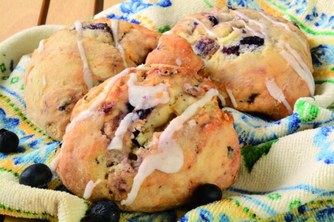 magemd11441] Scones de Mirtilo e Chocolate Branco INGREDIENTES: 250 gramas de farinha de trigo; 60 gramas de manteiga sem sal gelada cortada em cubos; 3 colheres (sopa) de açúcar cristal; 2 colheres (chá) de fermento em pó; 1/2 colher (chá) de sal; 100 ml de leite; 1 ovo
