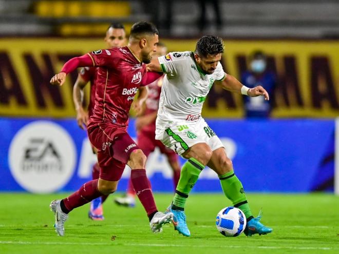 O América empatou em 2 a 2 com o Tolima (Colômbia) e viu acabarem suas chances de avançar na Copa Libertadores