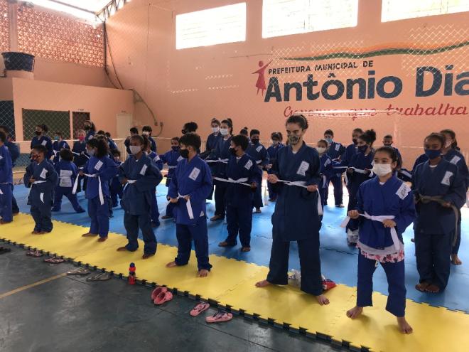Em outubro, a ONG Ajudôu fez a entrega de uniformes, para a prática esportiva de judô, aos 600 alunos dos núcleos de Ipatinga, Santana do Paraíso, Antônio Dias, Itabira e Nova Era