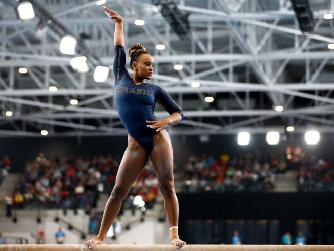 A ginasta Rebeca Andrade brilhou na noite desta terça-feira (24) para conquistar a medalha de ouro da prova de salto sobre a mesa dos Jogos Pan-Americanos, disputados em Santiago (Chile)