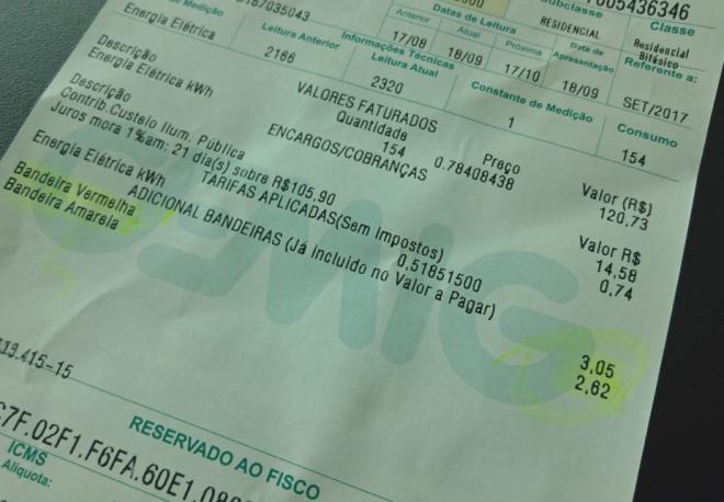 Os consumidores de energia elétrica receberão as contas relativas ao consumo de outubro com o adicional de R$ 3,50 relativo à bandeira vermelha, patamar 2, a cada 100 kWh consumidos