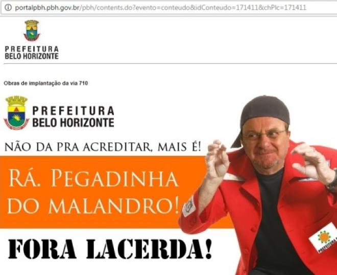 Duas páginas do portal foram alteradas. Uma delas fazia piada com o prefeito Marcio Lacerda