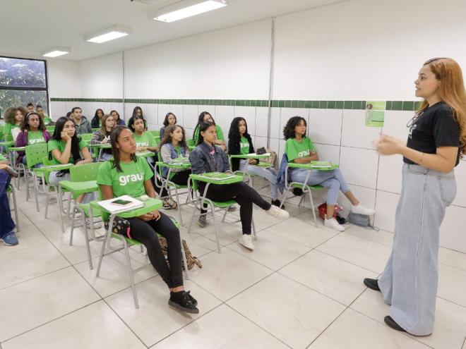 O sorriso tomou conta do rosto de Maria Eduarda Gonçalves Figueiredo, de 18 anos, na manhã desta terça-feira (2/5), após a recepção do Centro de Ensino Grau Técnico, em Belo Horizonte, onde ela recebeu o uniforme, a apostila do curso Técnico em Administração e o cartão bancário para o recebimento da ajuda de custo