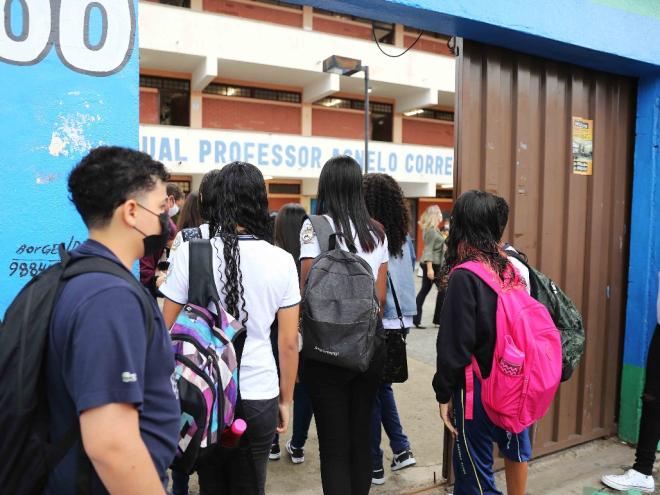Alunos da rede estadual de ensino voltaram às aulas presenciais nesta segunda-feira (7) para o início do ano letivo 2022