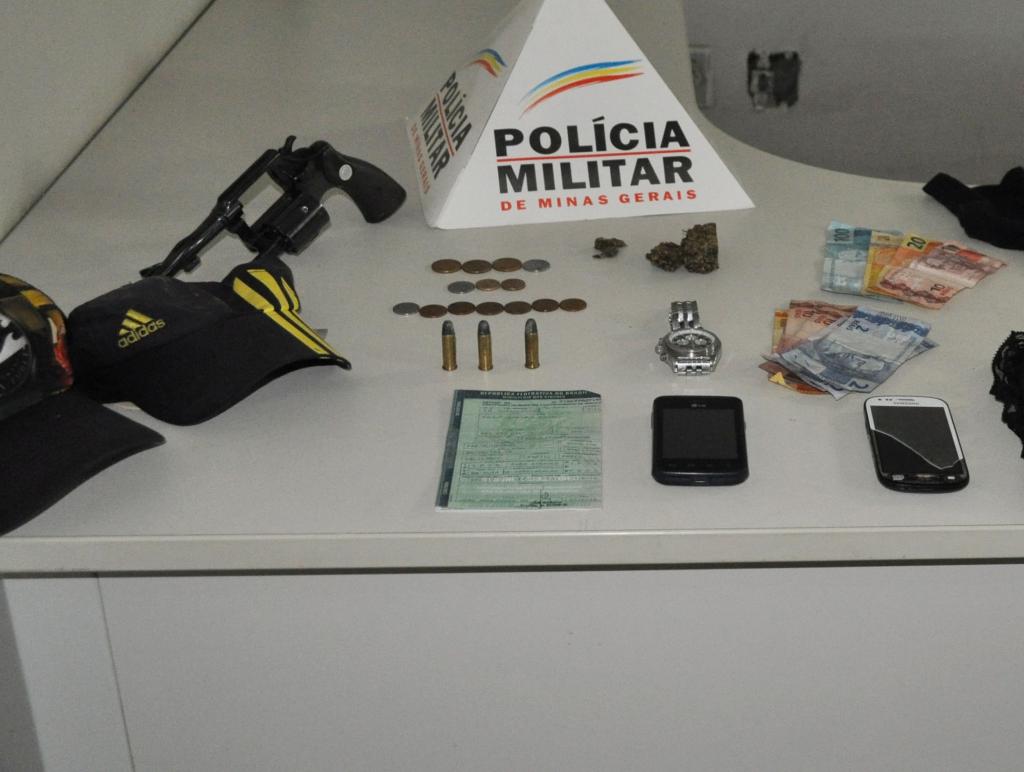 Durante buscas, os policiais suspeitaram do comportamento de dois homens e encontraram com eles droga e arma de fogo