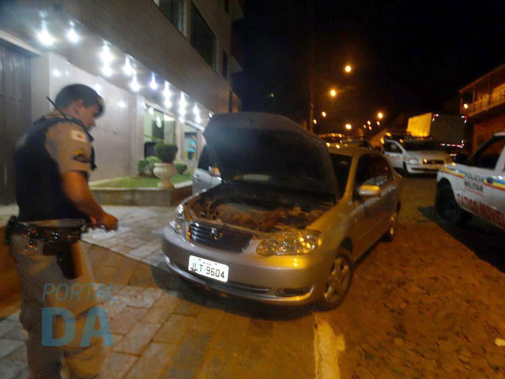 Enquanto os assaltantes tentavam colocar o cofre no carro que haviam estacionado na garagem do hotel, um Toyota Corolla XLI de cor prata, com placas de Ipaba, chegou uma viatura da Polícia Militar. Para avisar os demais membros da quadrilha, um dos criminosos efetuou dois tiros dentro da garagem. Em seguida, os assaltantes entraram no Corolla e iniciaram a fuga.