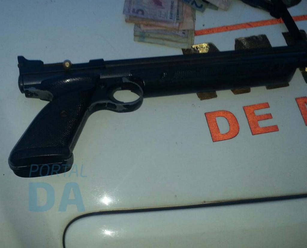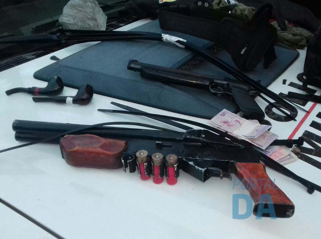 Com os criminosos foram apreendidos quatro telefones celulares, R$ 214,45, relógio, munições, uma escopeta caseira calibre 12, entre outros objetos.