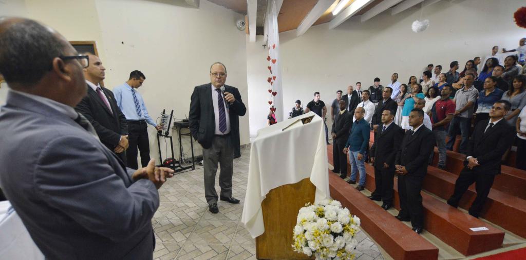 O auditório do Complexo Penitenciário Nelson Hungria, em Contagem, foi cenário nesta quinta-feira (24/11) do casamento de 18 homens que cumprem pena na unidade, uma das maiores da Secretaria de Estado de Administração Prisional (SEAP). A cerimônia foi realizada pelo pastor Altair Ferreira, de uma igreja evangélica que faz assistência religiosa no complexo penitenciário. A união dos casais será formalizada junto ao Cartório de Registro Civil de Contagem, conhecido na região como Cartório Guimarães. Os documentos foram assinados na presença de testemunhas, e serão encaminhados para reconhecimento no cartório.