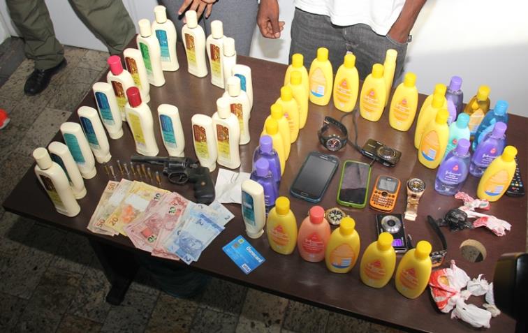 Na residência de Gleicilaine, na rua Amós, bairro Canaã, a PC apreendeu drogas, dois veículos e vários cosméticos. A gente acredita que ela recebia esses produtos em troca de acertos de drogas. Os usuários furtavam em farmácias e supermercados e repassavam a ela. A Gleicilaine era uma espécie de chefe do tráfico naquela região. Pelo que sabemos, ela era responsável pelo Canaã e seu namorado pelo Vila Celeste”, explicou à delegada.