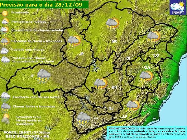 DA REDAÇÃO Nesta segunda-feira (28), a presença de uma frente fria perto do litoral do Sudeste juntamente com as temperaturas elevadas e o canal de umidade proveniente da Amazônia, continuará mantendo o céu encoberto com momentos de abertura de sol e as típicas pancadas de chuva de verão a qualquer hora, principalmente no Centro-Sul e Oeste Mineiro.