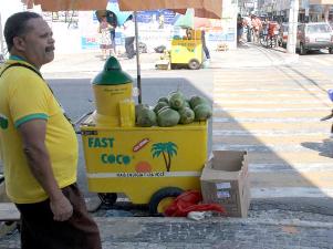 Próximos à praça Primeiro de Maio, vendedores de água de coco atuavam tranqüilamente na tarde de ontem