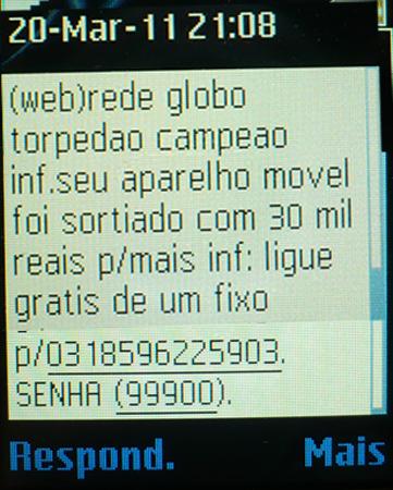 A estratégia é antiga e, como muitas pessoas já a conhecem, fica cada vez mais difícil os golpistas alcançarem seus objetivos. Entretanto, eles têm inovado na quantidade de prêmios oferecidos. Pelo menos permanecem estáveis os erros gritantes de língua portuguesa nas mensagens enviadas em nome de grandes empresas do ramo de alimentos ou emissoras de televisão aberta.