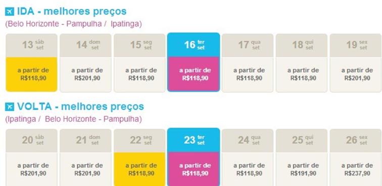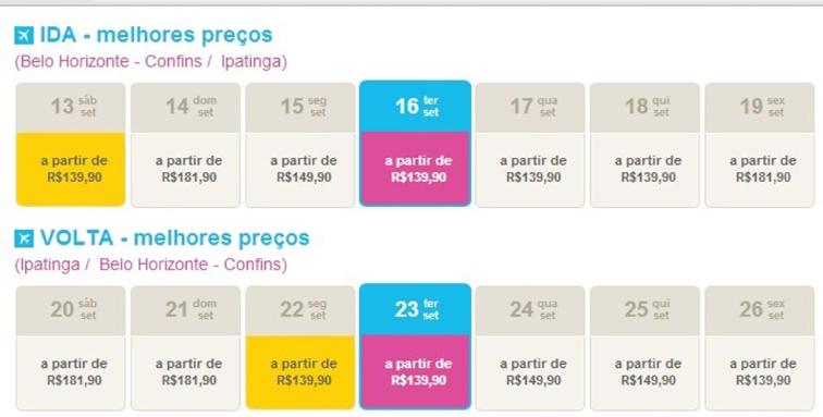 Se o desembarque for em Confins a passagem custa R$ 139,90 na ida ou na volta. Os valores citados neste texto são para viagem no mês de setembro. Ou seja, não tem desculpa de afirmar que a compra está sendo feita na última hora. Um executivo da Azul, que preferiu não se identificar, informou que as passagens mais baratas para a capital mineira são para atrair passageiros nesta rota.