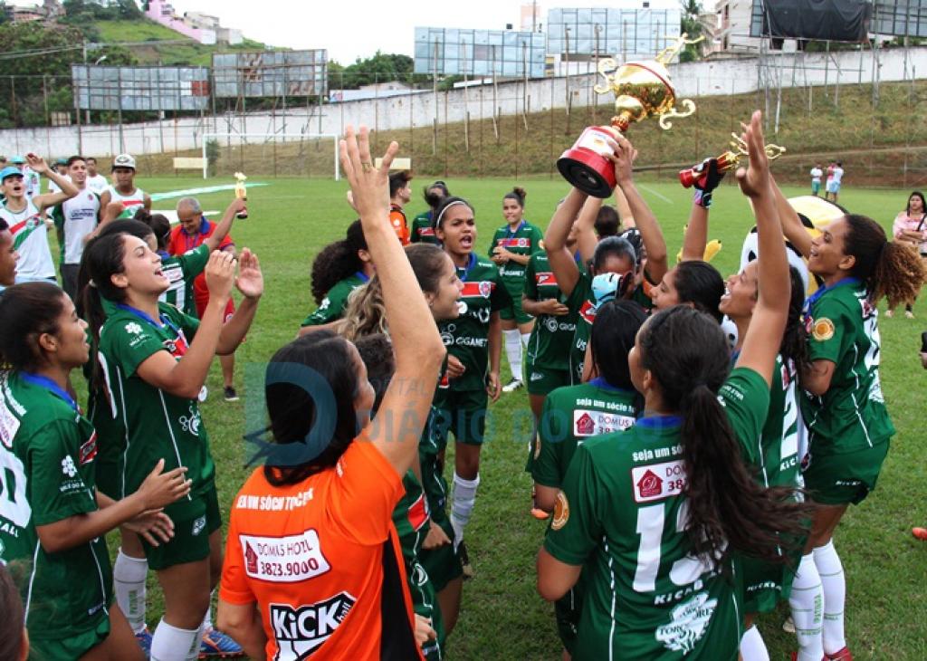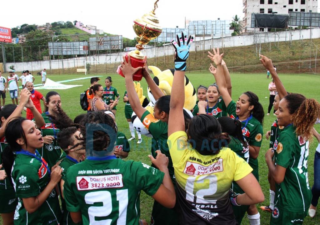 O Ipatinga recebe o troféu de campeão invicto da 1ª Copa Leste de Futebol Feminino