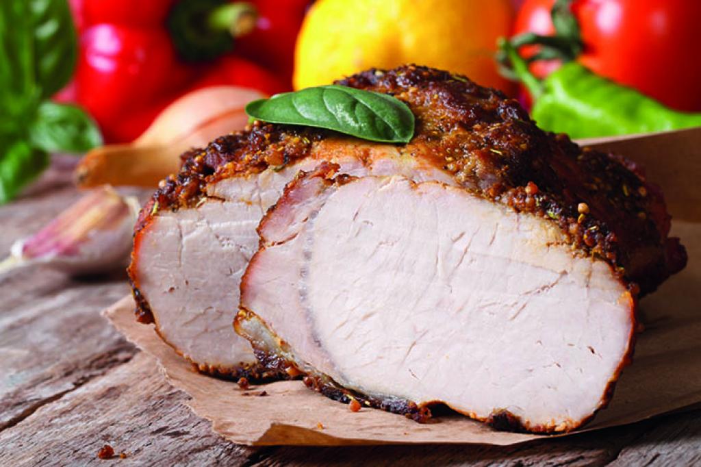 Aproximadamente um quilo e meio de lombo de porco; 6 colheres (sopa) de mel; 4 colheres (sopa) de mostarda; 2 colheres (sopa) de vinagre; 3 colheres (sopa) de molho de soja; sal e pimenta do reino a gosto.