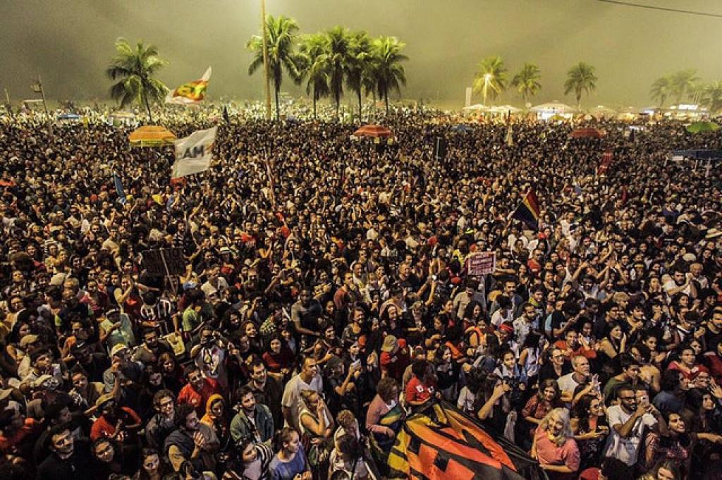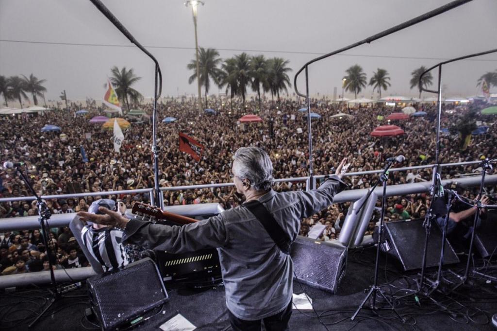 Embalados com música tocada por nomes como Milton Nascimento e Caetano Veloso, multidão faz protesto pacífico no Rio de Janeiro