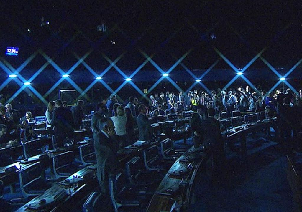 Ao deixar o plenário após suspender a sessão, o presidente do Senado disse que a votação será retomada "quando a ditadura permitir".