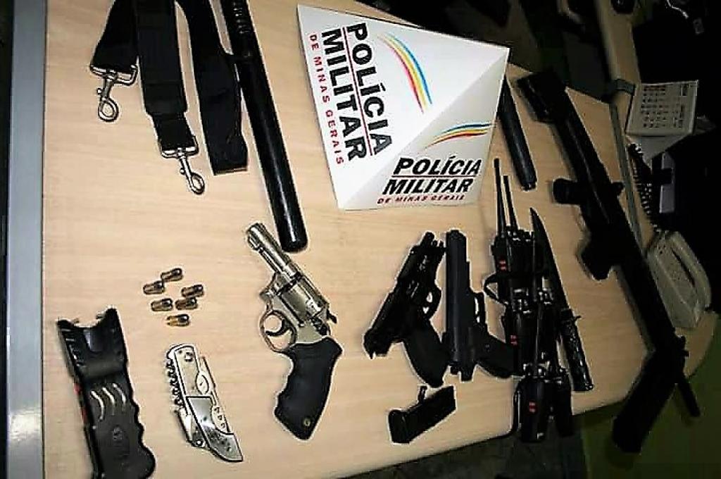 Todos os cinco ocupantes usavam roupas pretas, parecidas com uniforme do BOPE, colete balístico e boinas vermelhas. Vestimentas um pouco incomum pra quem vai apenas fazer segurança e como eles não souberam explicar quem os havia contratado resolvemos realizar buscas no interior do veículo, já que com eles nada de ilícito foi encontrado, mas dentro da picape localizamos, um revólver calibre 38 municiado, três réplicas de armas fogo, entre as quais, duas pistolas e um rifle, canivetes multifunção, diversos bastões, rádio de comunicação, armas de choque elétrico e outros materiais diversos”, explica o oficial.