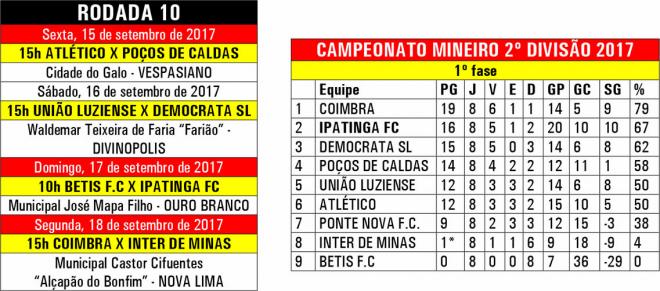 Na sequência, ficam faltando os jogos, pela ordem, contra Democrata-SL (fora), Atlético B (casa), Poços de Caldas (fora) e o Ponte Nova (casa). Na matemática, as contas foram feitas internamente, mas ainda não são passadas diretamente aos jogadores, o que poderia acarretar uma pressão maior ao grupo.