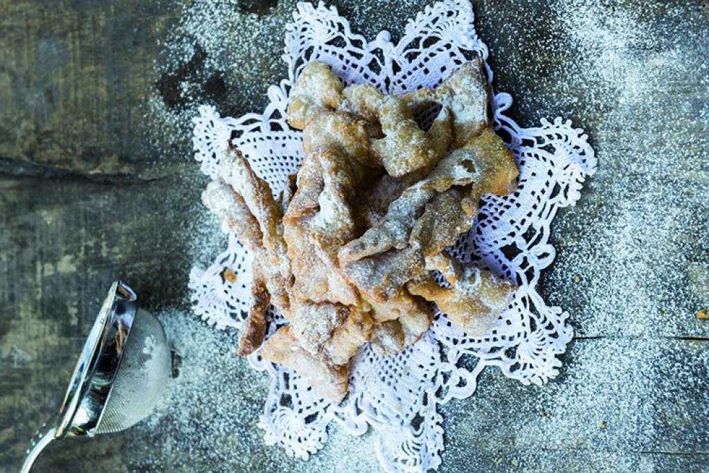 Escorra em papel absorvente. Polvilhe com açúcar de confeiteiro e sirva a seguir. Variação: Polvilhe a Chiacchiere com açúcar e canela em pó. Dica: Use todos os ingredientes em temperatura ambiente.
