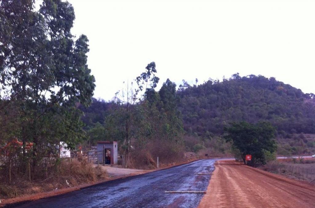 O asfalto começou a aparecer nos primeiros metros da MG-760. A pavimentação foi iniciada nas proximidades do canteiro de obras da rodovia, a 600 metros do distrito de Cava Grande, em Marliéria.