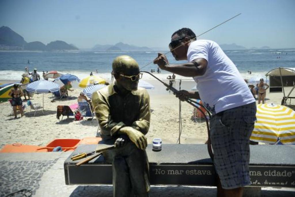 Estátua de Drummond é mais uma vez alvo de vandalismo no Rio