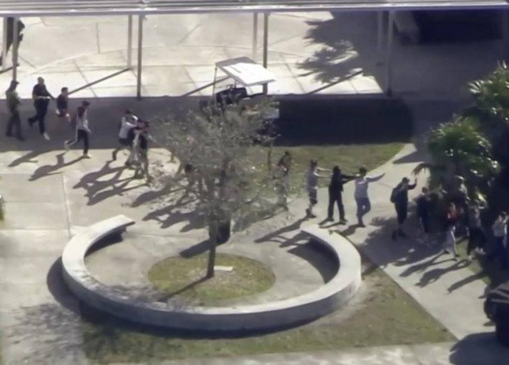 Estudantes deixam a escola de ensino médio Marjory Stoneman Douglas, em Parkland, Flórida, após tiros serem ouvidos Além das vítimas confirmadas, as autoridades afirmaram que há outros jovens feridos em hospitais, alguns em estado grave. O FBI e a polícia estão investigando quais foram as motivações para o ataque.