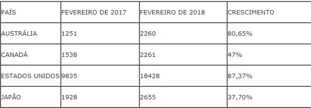 Em fevereiro, o número de vistos concedidos para os viajantes das nacionalidades atendidas alcançou a marca de 25.604 autorizações - vistos tradicionais e eletrônicos. Destes, 18.328 foram e-Visas, ou seja, 72% do total de vistos emitidos. Os americanos foram os que mais aproveitaram a facilidade - 13.358 -, seguido dos australianos (2.170), canadenses (1.769) e japoneses (1.031).