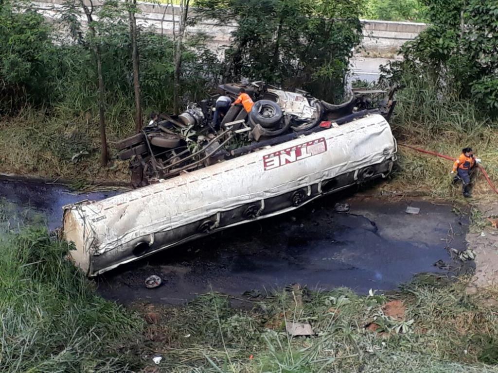 Um acidente com um caminhão puxando uma carreta-taque carregada com combustíveis foi registrado por volta das 10h20 desta sexta-feira (27), em uma das alças de acesso entre as BRs 381 e 262, próximo ao trecho conhecido como Ponte Torta”, em João Monlevade.A Polícia Rodoviária Federal (PRF) informou que o veículo seguia sentido a Ipatinga quando ocorreu o acidente, que deixou o motorista ferido. Parte da carga de etanol e diesel derramou em direção a um curso d'água.
