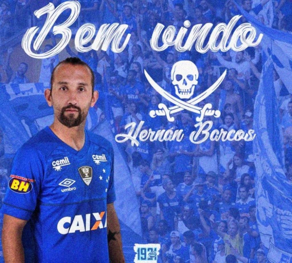 Novo reforço do Cruzeiro, o atacante Hernán Barcos desembarcou em Belo Horizonte na tarde dessa sexta-feira (13). Conhecido como El Pirata”, o argentino será apresentado oficialmente para a imprensa no sábado (14), depois de concluídos os exames médicos e testes de praxe. Caso contrário, a coletiva com o jogador ficará para o início da semana.