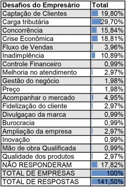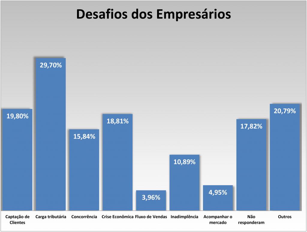 O principal desafio enfrentado pelo empresariado estabelecido no bairro Bom Retiro indicado na pesquisa foi a alta tributação. Ao todo, 29% dos empresários entrevistados apontaram a carga tributária como um problema. Outros desafios indicados pelo empresariado do Bom Retiro, foram: captação de clientes e o momento de crise econômica.