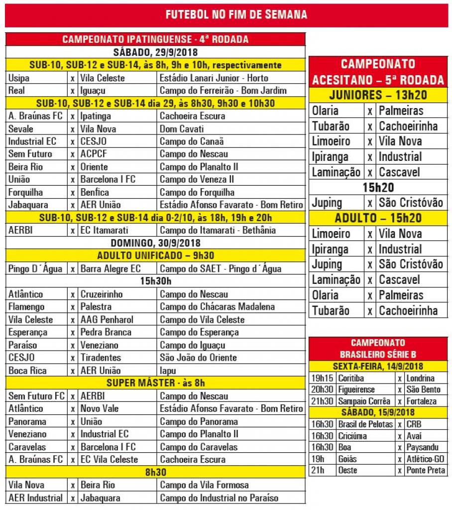 Confira os números e os próximos jogos dos Campeonatos de Ipatinga