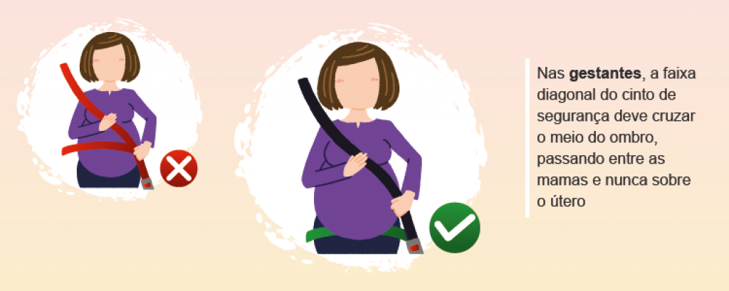 O Código Brasileiro de Trânsito prevê que o cinto de segurança de três pontos seja colocado de forma que passe pelo ombro e diagonalmente pelo tórax, sendo que o condutor/passageiro deve sentar-se corretamente no banco e com a coluna bem reta. Com o cinto de dois pontos (abdominal), o passageiro deve colocá-lo na região dos quadris e não na barriga. Para as gestantes, a faixa diagonal do cinto de segurança deve cruzar o meio do ombro, passando entre as mamas e nunca sobre o útero. É importante destacar que o cinto não deve estar torcido e nem com folgas.