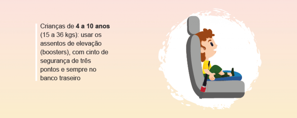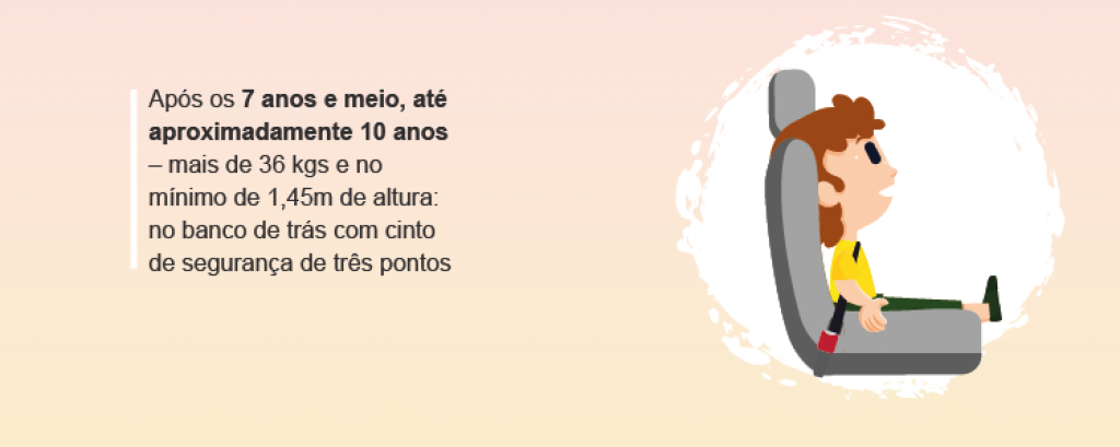 Somente após 10 anos as crianças podem se sentar no banco dianteiro usando o cinto de segurança. A não obediência ao dispositivo legal é considerada infração gravíssima e prevê multa de R$ 293,47, a perda de sete pontos na Carteira Nacional de Habilitação (CNH) e retenção do veículo até que a irregularidade seja sanada.